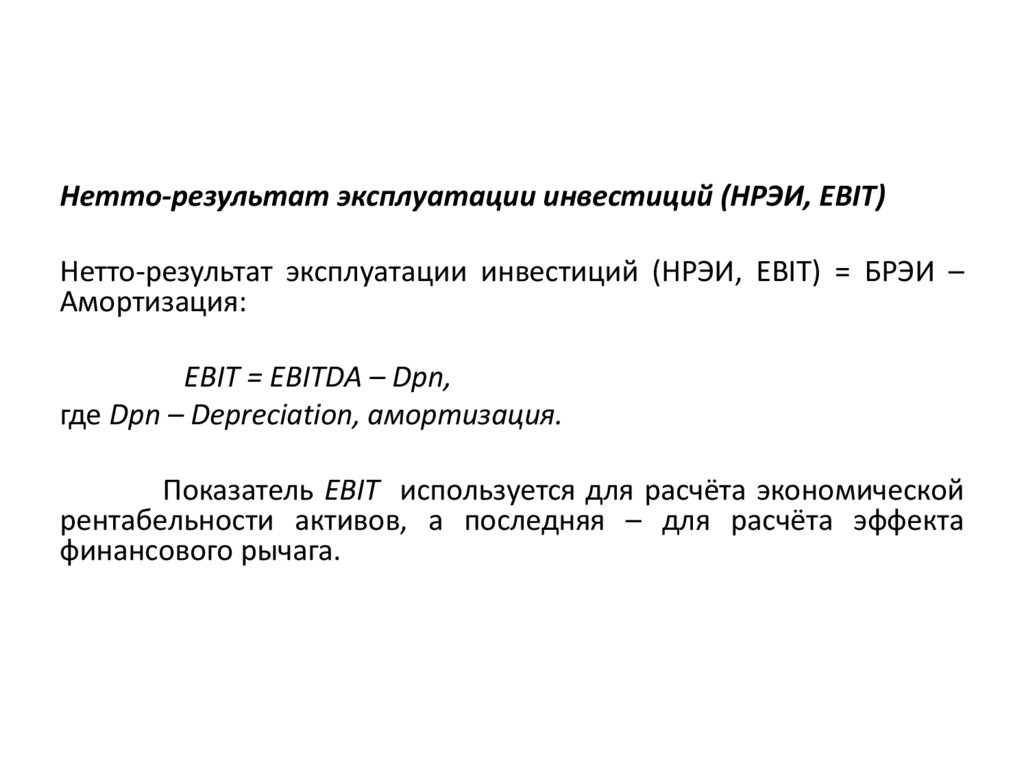 Нетто-результат эксплуатации инвестиций (НРЭИ, EBIT)Нетто-результат эксплуатации инвестиций (НРЭИ, EBIT) = БРЭИ –