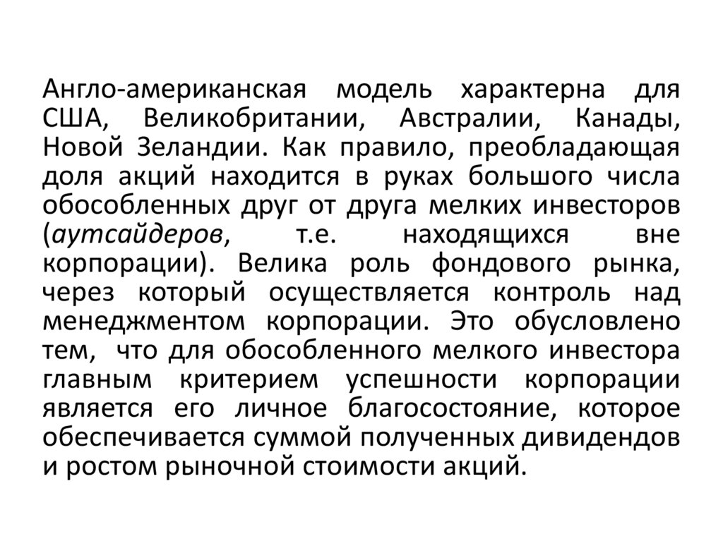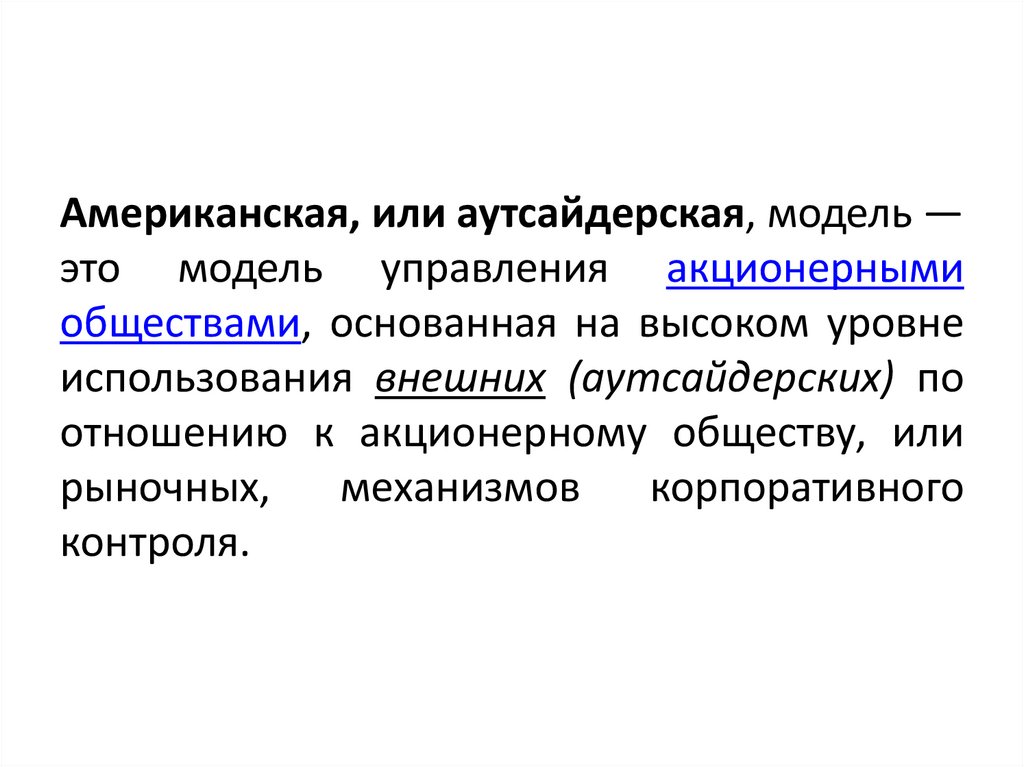 Американская, или аутсайдерская, модель —это модель управления акционерными