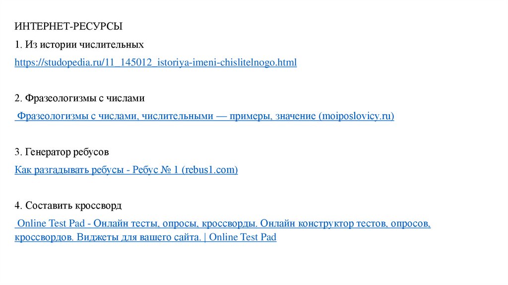 ИНТЕРНЕТ-РЕСУРСЫ1. Из истории числительных