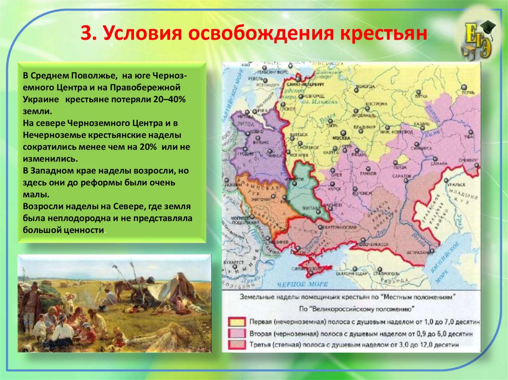 3. Условия освобождения крестьянВ Среднем Поволжье, на юге Черноземного Центра и на Правобережной