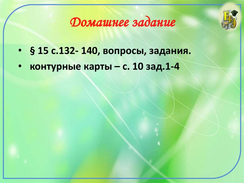 Домашнее задание• § 15 с.132- 140, вопросы, задания.