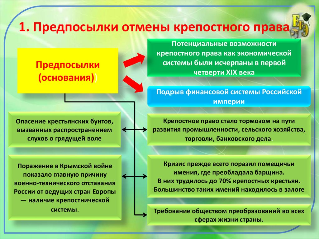 1. Предпосылки отмены крепостного права". Лучше начать уничтожать крепостное право