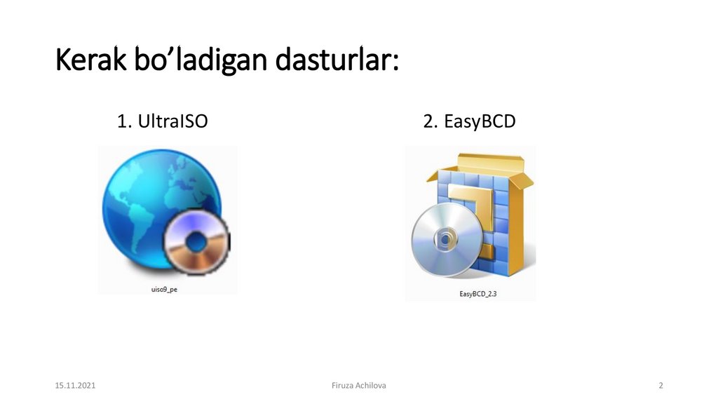 Kerak bo’ladigan dasturlar:1. UltraISO