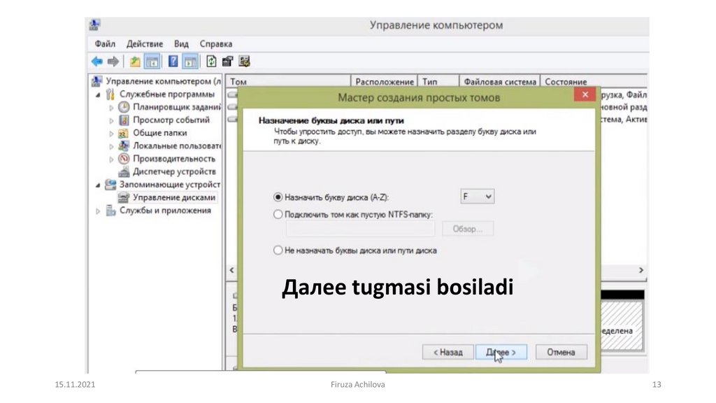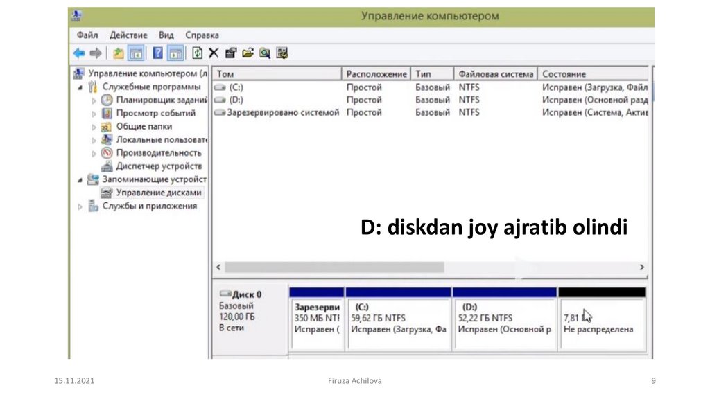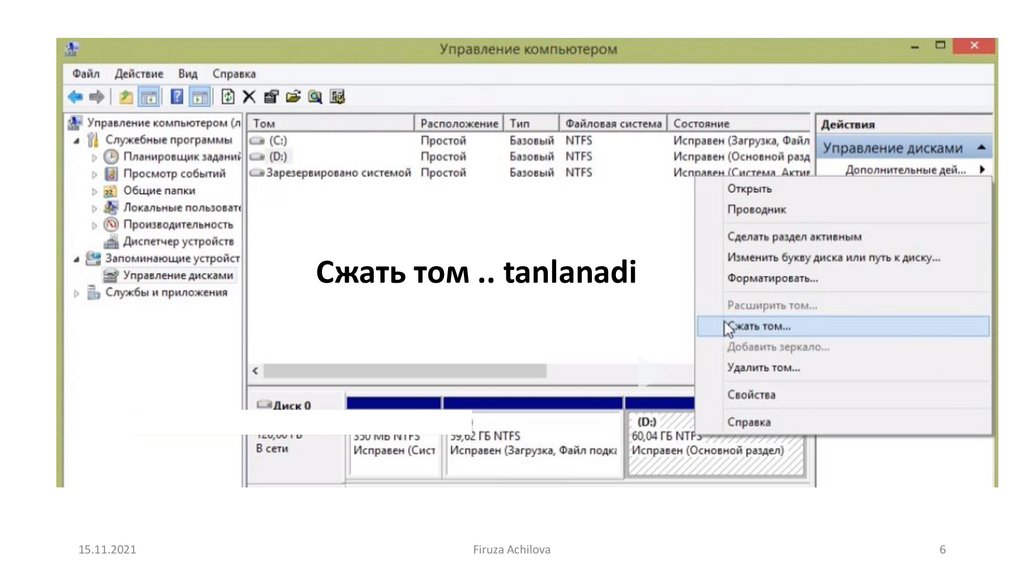 Мой компьютер>Управление-> Управление дисками15.11.2021