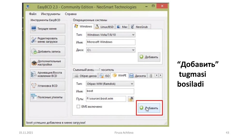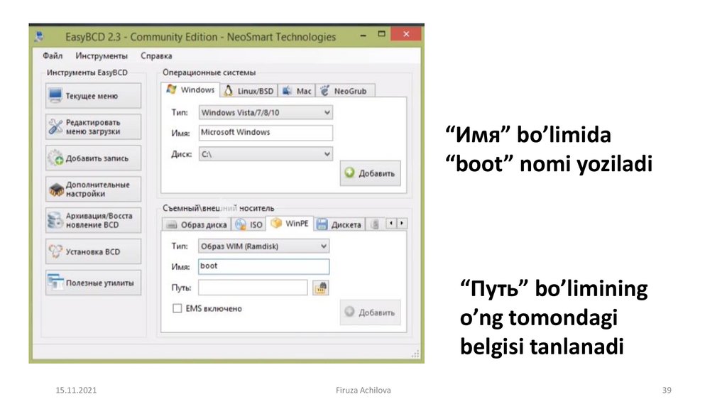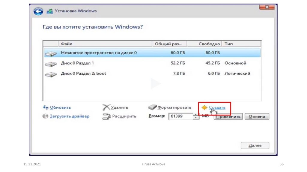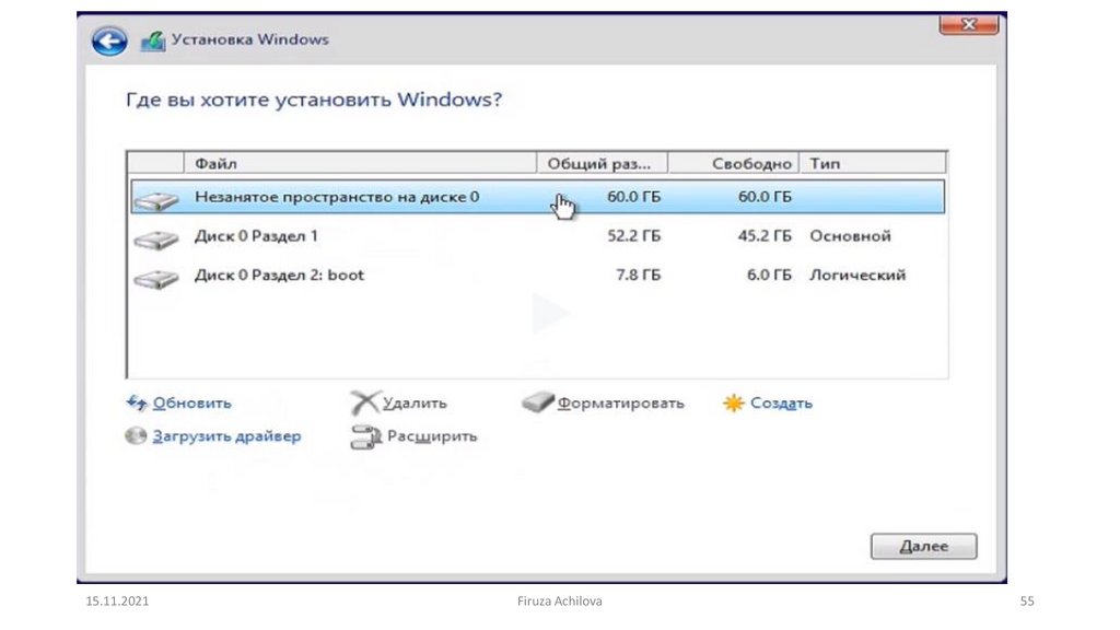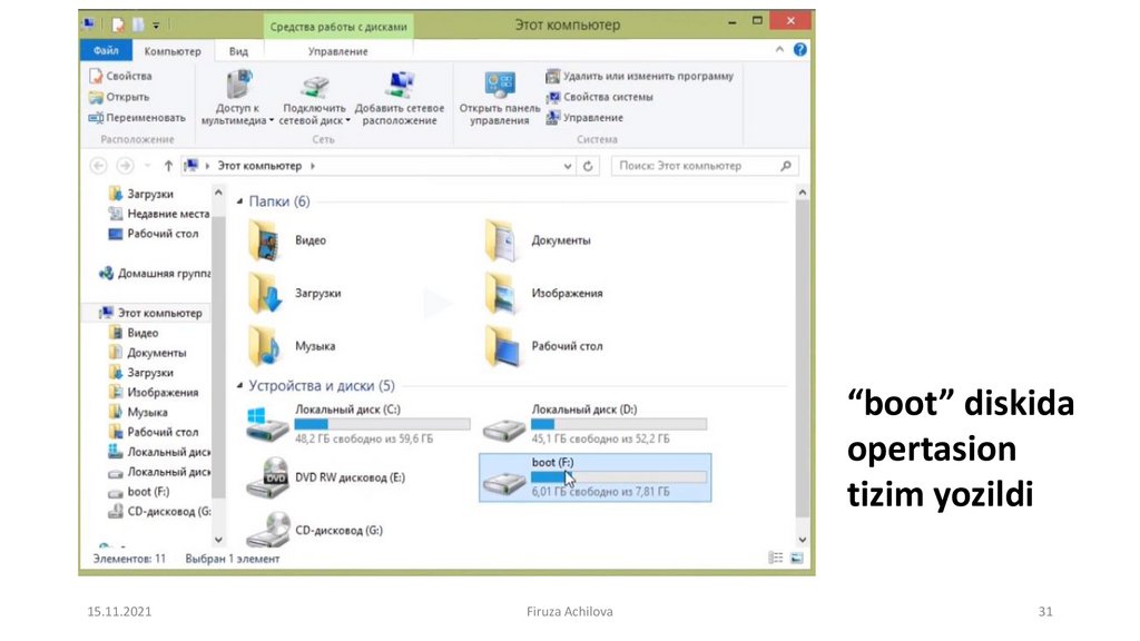 “boot” nomli disk hosil bo’ldi15.11.2021