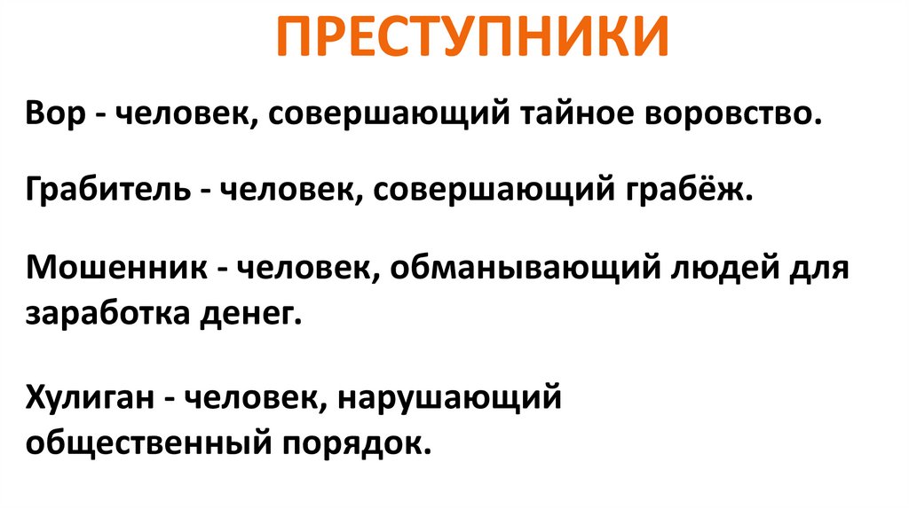 ПРЕСТУПНИКИВор - человек, совершающий тайное воровство.