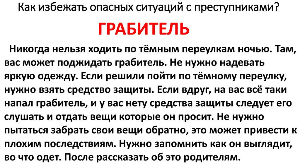 Как избежать опасных ситуаций с преступниками?ГРАБИТЕЛЬ