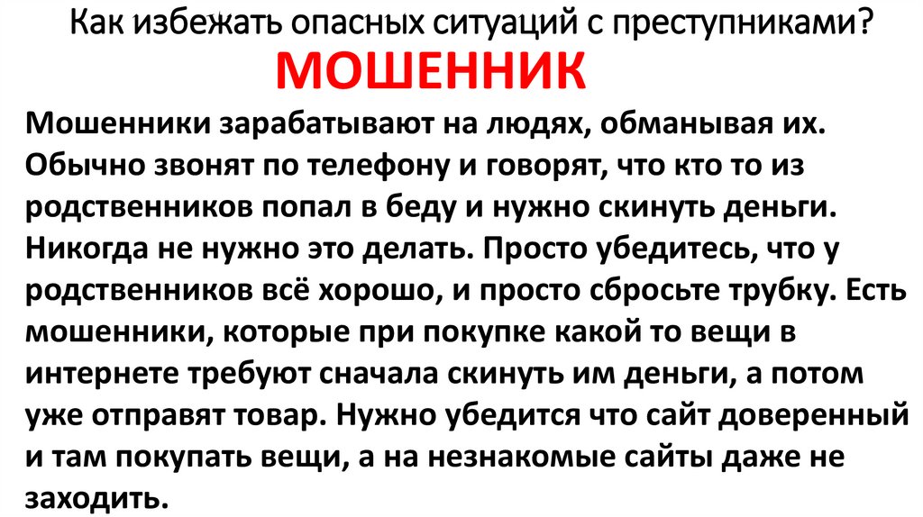 Как избежать опасных ситуаций с преступниками?МОШЕННИК