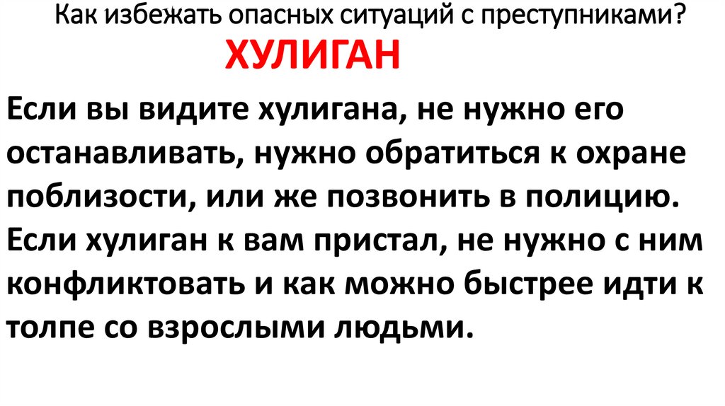 Как избежать опасных ситуаций с преступниками?ХУЛИГАН