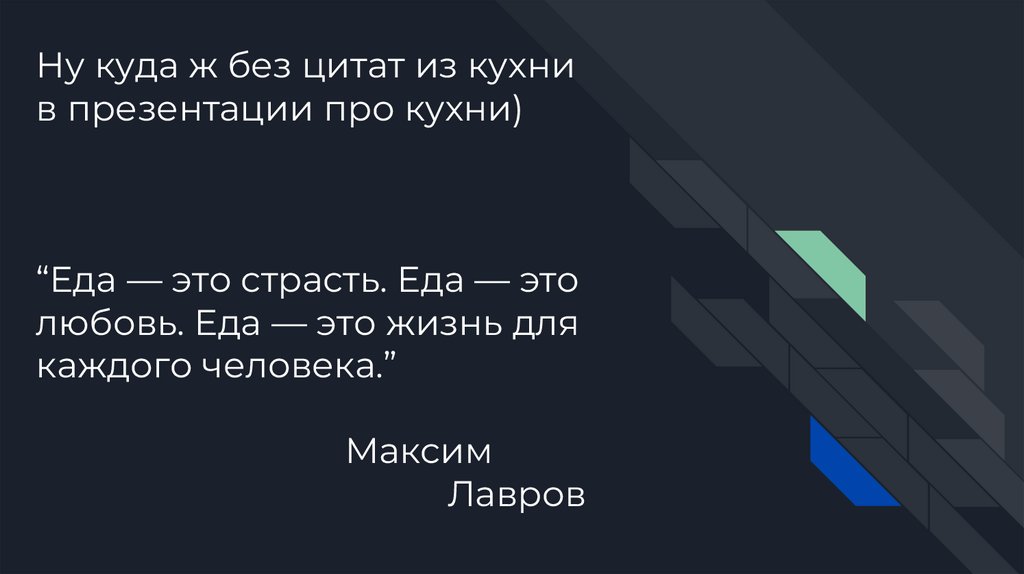 Ну куда ж без цитат из кухнив презентации про кухни)