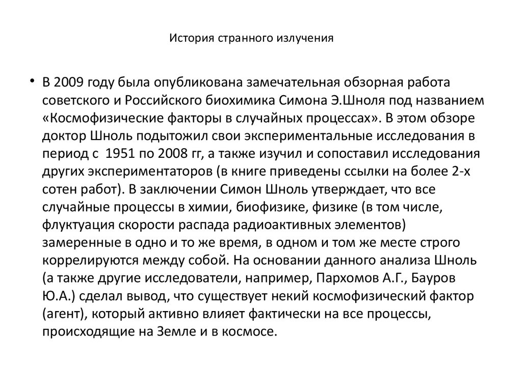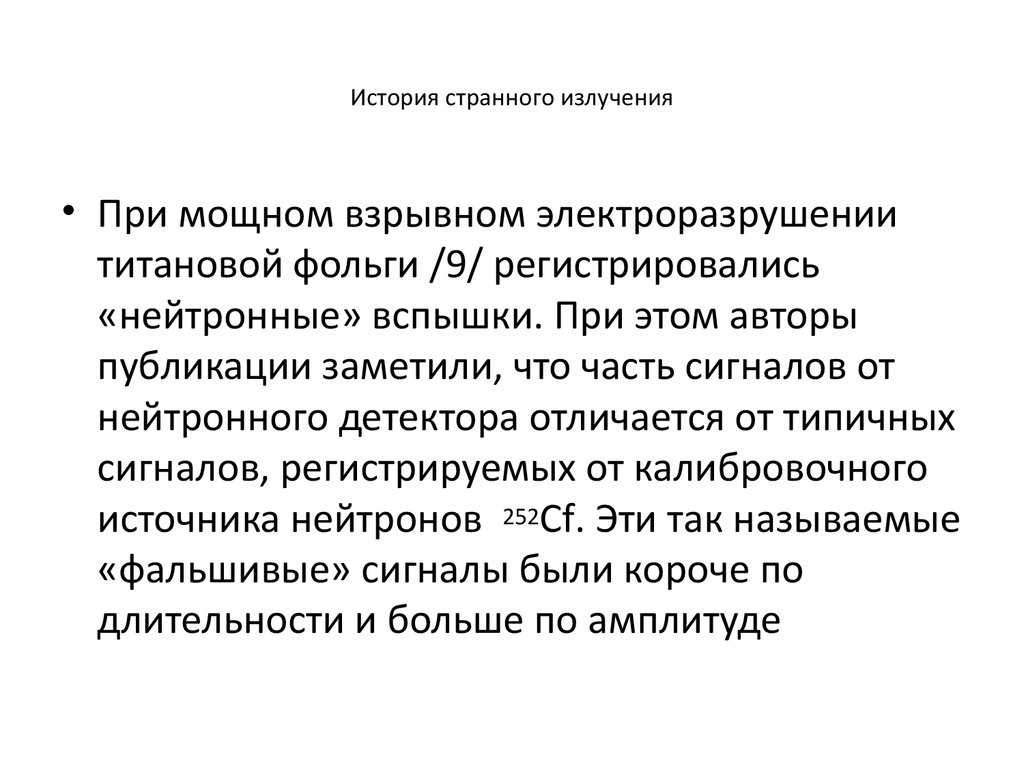История странного излучения• В 2009 году была опубликована замечательная обзорная работа