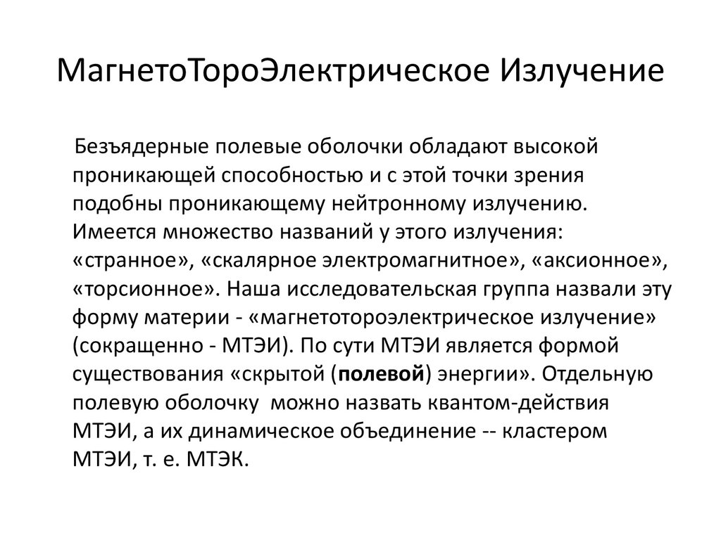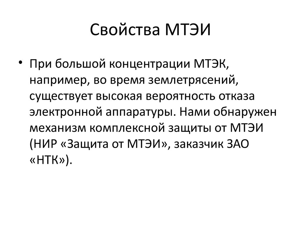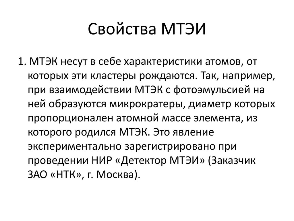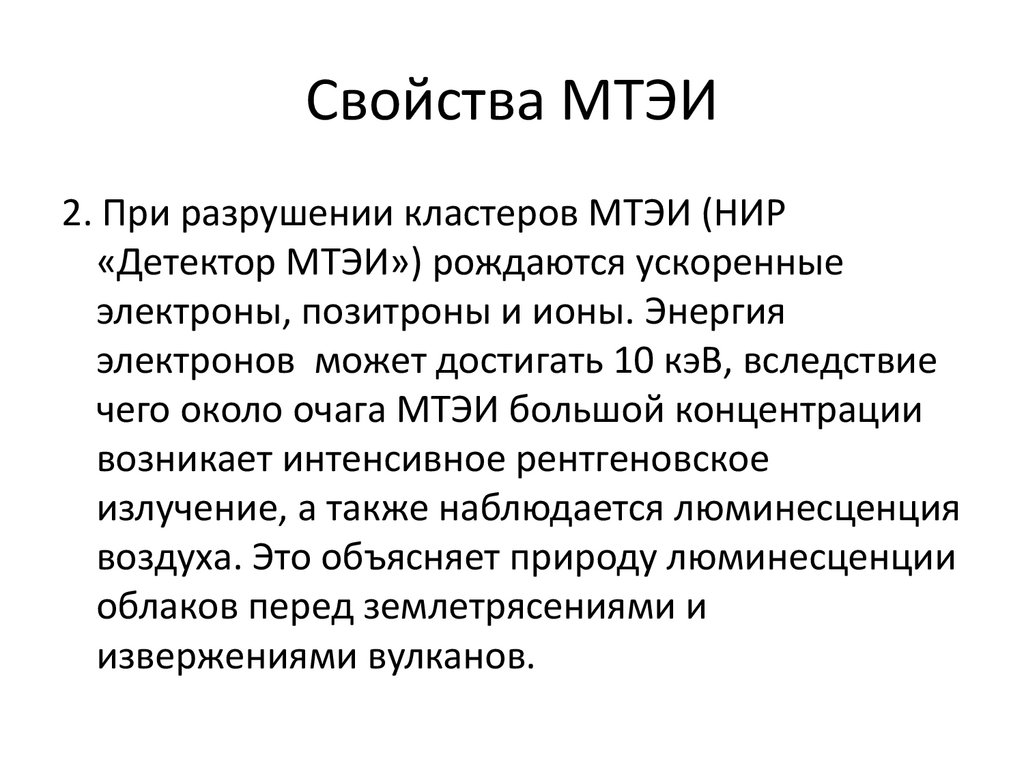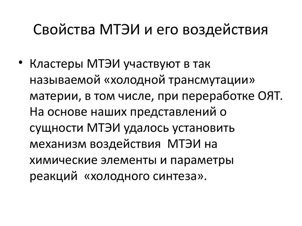 Свойства МТЭИ и его воздействия• Кластеры МТЭИ участвуют в так
