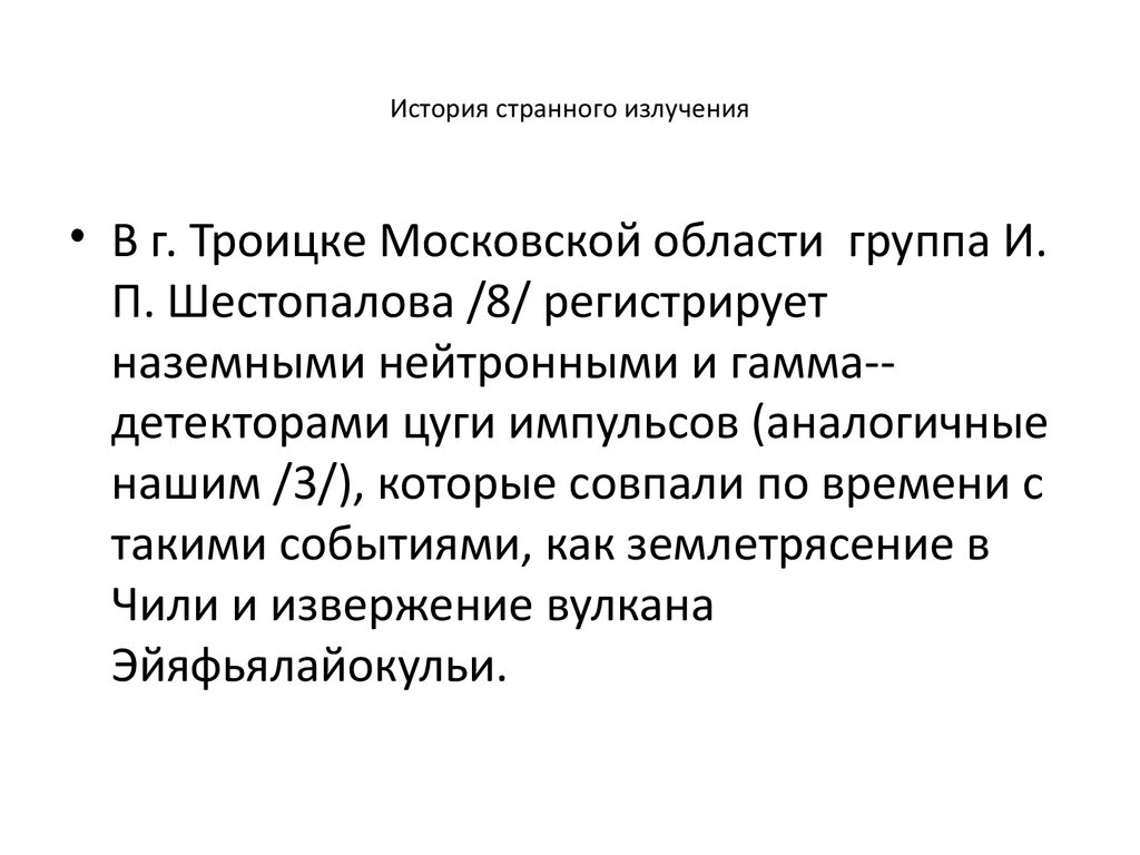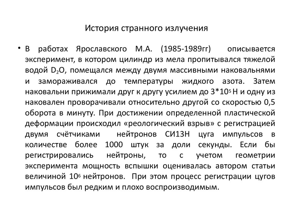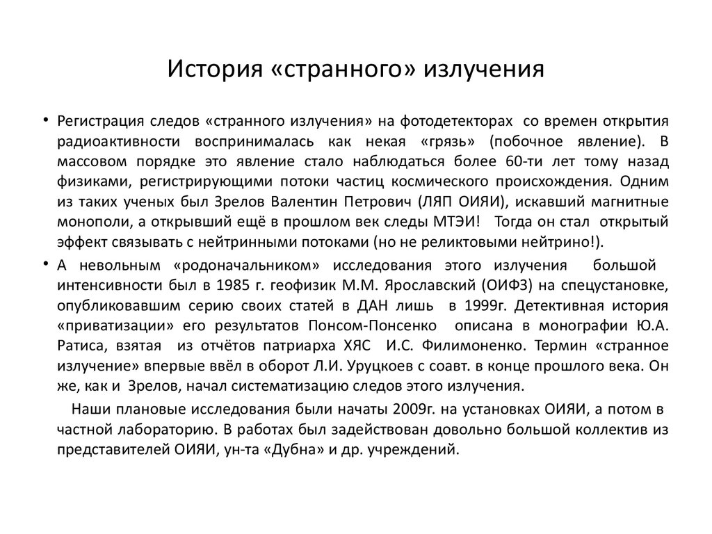 История странного излучения• В работах Ярославского М.А. (1985-1989гг)