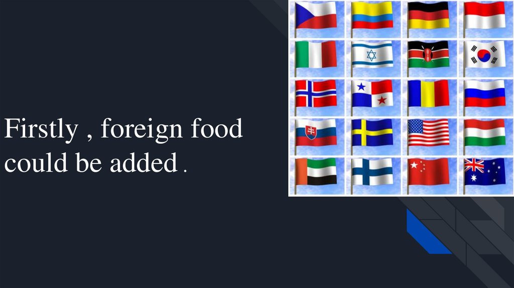 Firstly , foreign foodcould be added .