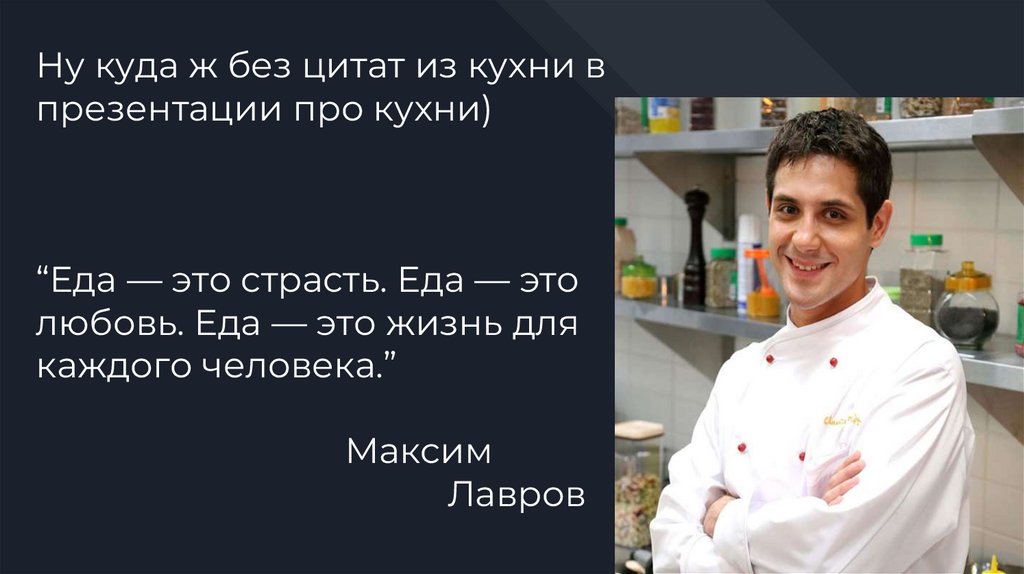 Ну куда ж без цитат из кухни впрезентации про кухни)