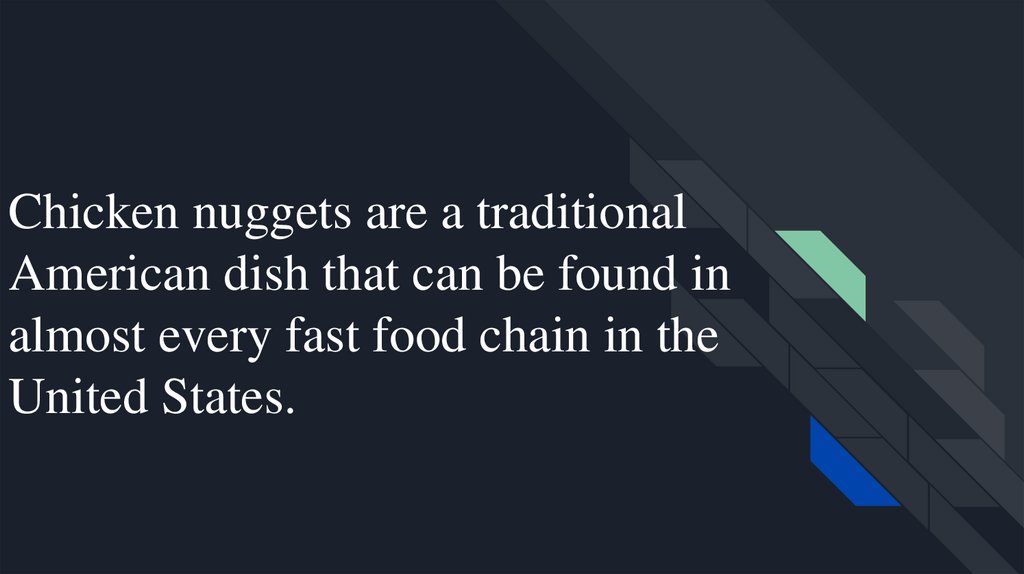 Chicken nuggets are a traditionalAmerican dish that can be found in