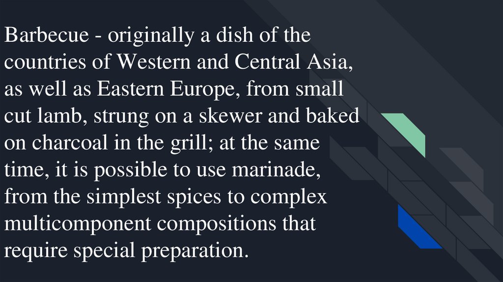 Barbecue - originally a dish of thecountries of Western and Central Asia,