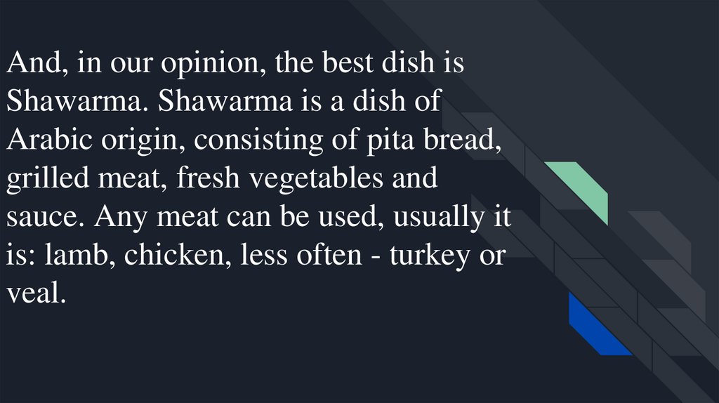 And, in our opinion, the best dish isShawarma. Shawarma is a dish of