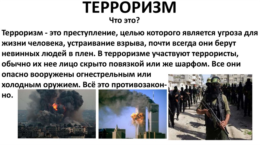 невинных людей в плен. В терроризме участвуют террористы,