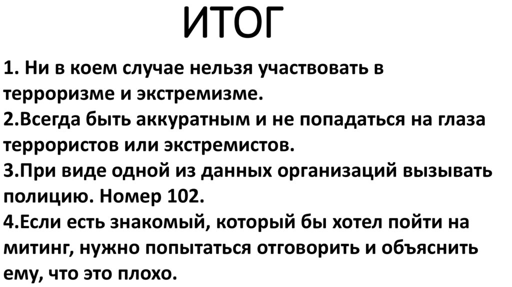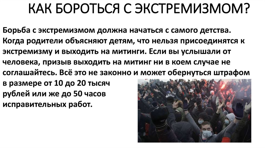экстремизму и выходить на митинги. Если вы услышали от