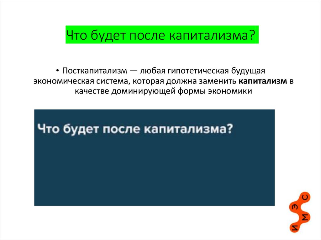 Что будет после капитализма?• Посткапитализм — любая гипотетическая будущая