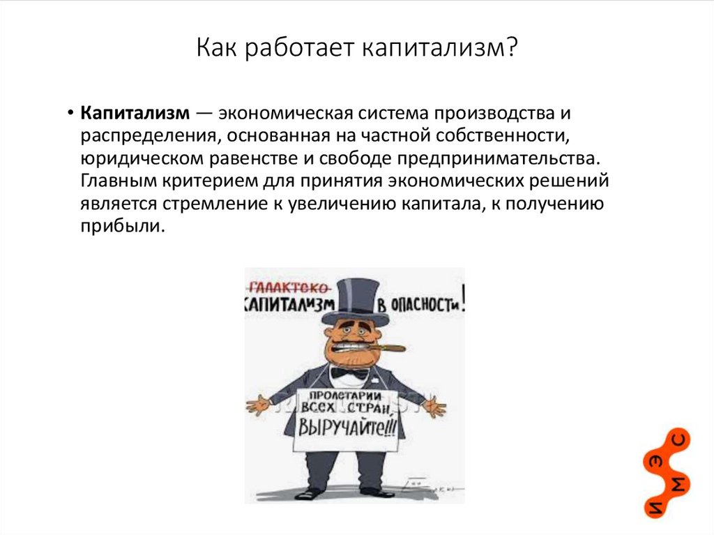 Как работает капитализм?• Капитализм — экономическая система производства и