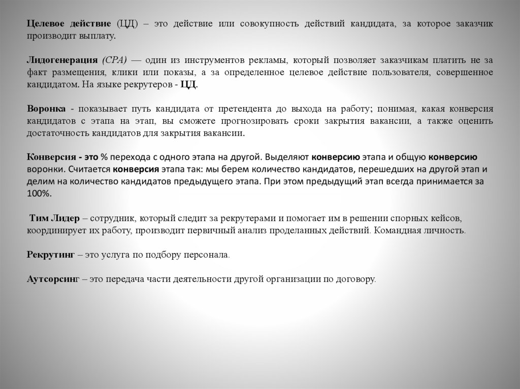 Целевое действие (ЦД) – это действие или совокупность действий кандидата, за которое заказчикпроизводит выплату.