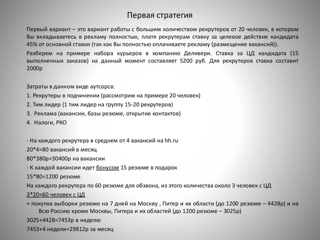 Первая стратегияПервый вариант – это вариант работы с большим количеством рекрутеров от 20 человек, в котором
