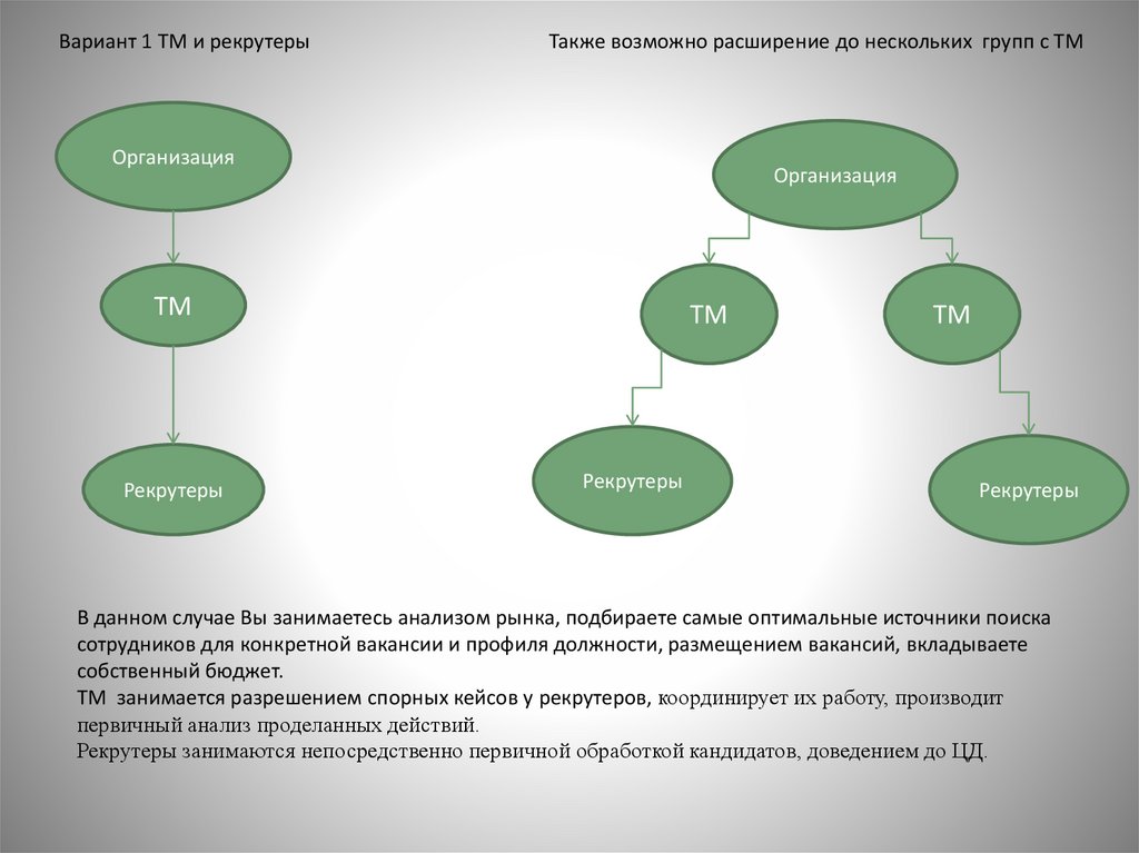 Вариант 1 ТМ и рекрутерыТакже возможно расширение до нескольких групп с ТМ