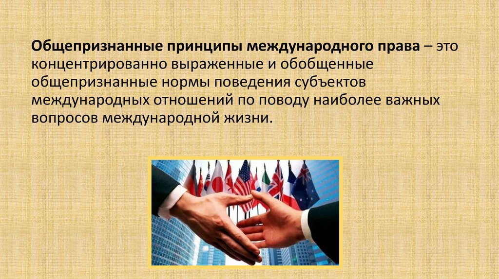 Общепризнанные принципы международного права – этоконцентрированно выраженные и обобщенные