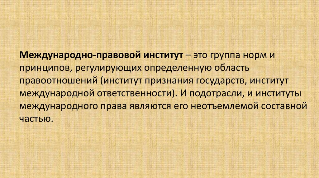 Международно-правовой институт – это группа норм ипринципов, регулирующих определенную область