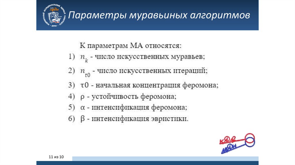 Базовый муравьиный алгоритм. Система муравьиных колоний. Параметры муравьиных алгоритмов
