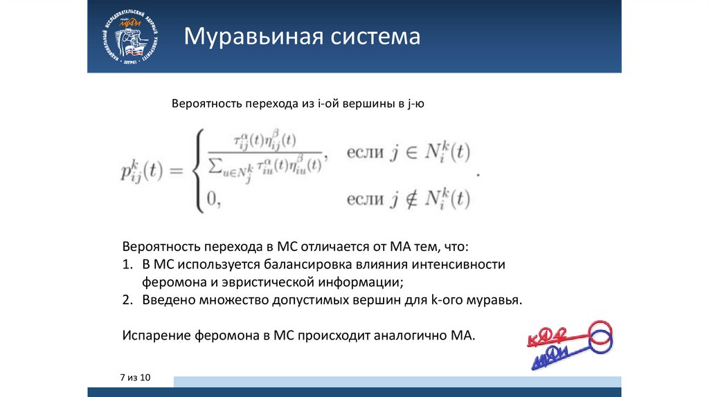 Муравьиная системаВероятность перехода из i-ой вершины в j-ю