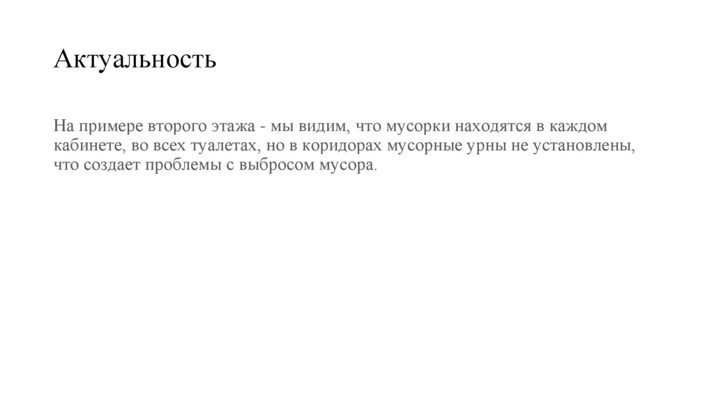 АктуальностьНа примере второго этажа - мы видим, что мусорки находятся в каждом