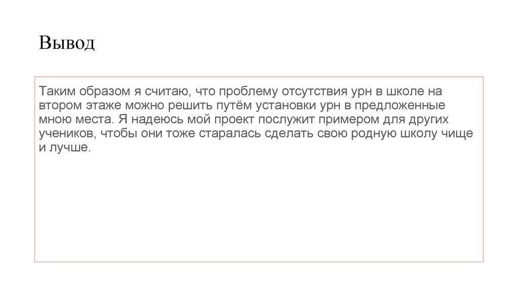 ВыводТаким образом я считаю, что проблему отсутствия урн в школе на