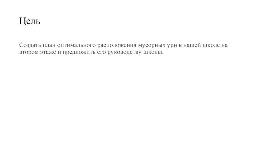 ЦельСоздать план оптимального расположения мусорных урн в нашей школе на