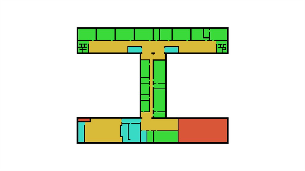 Красным цветом - зоны, которые не задействованы(спортзал,