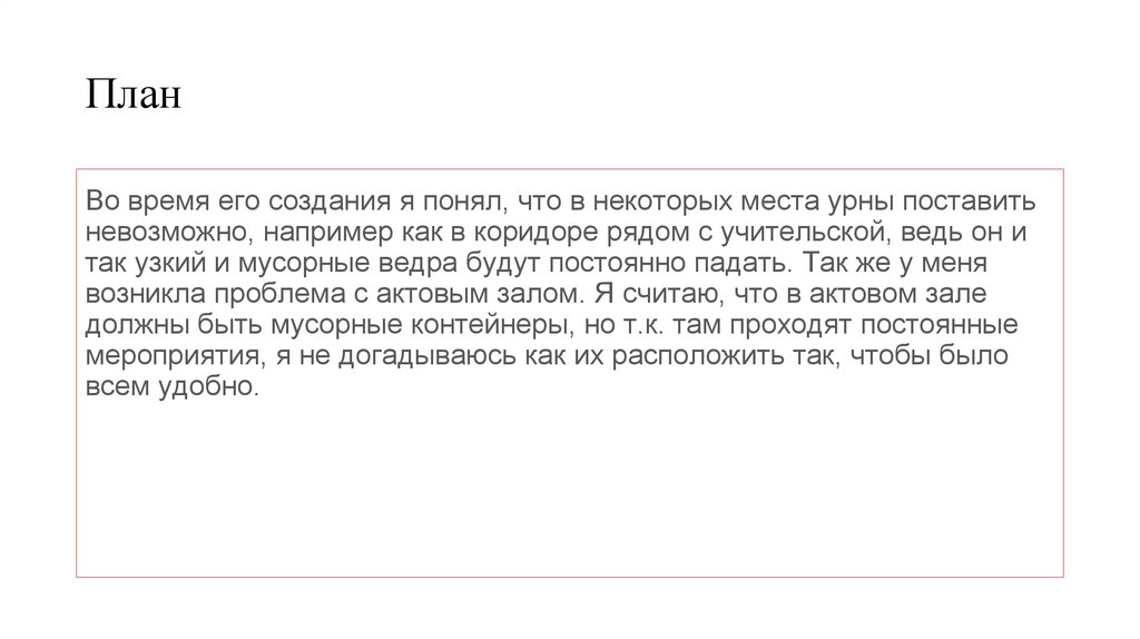 ПланВо время его создания я понял, что в некоторых места урны поставить