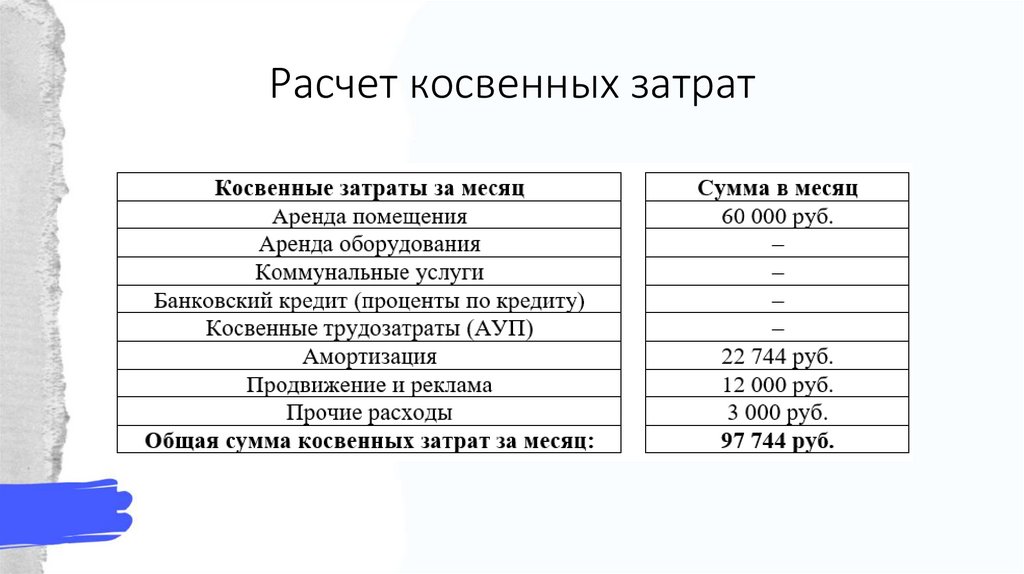 Расчет косвенных затрат12.