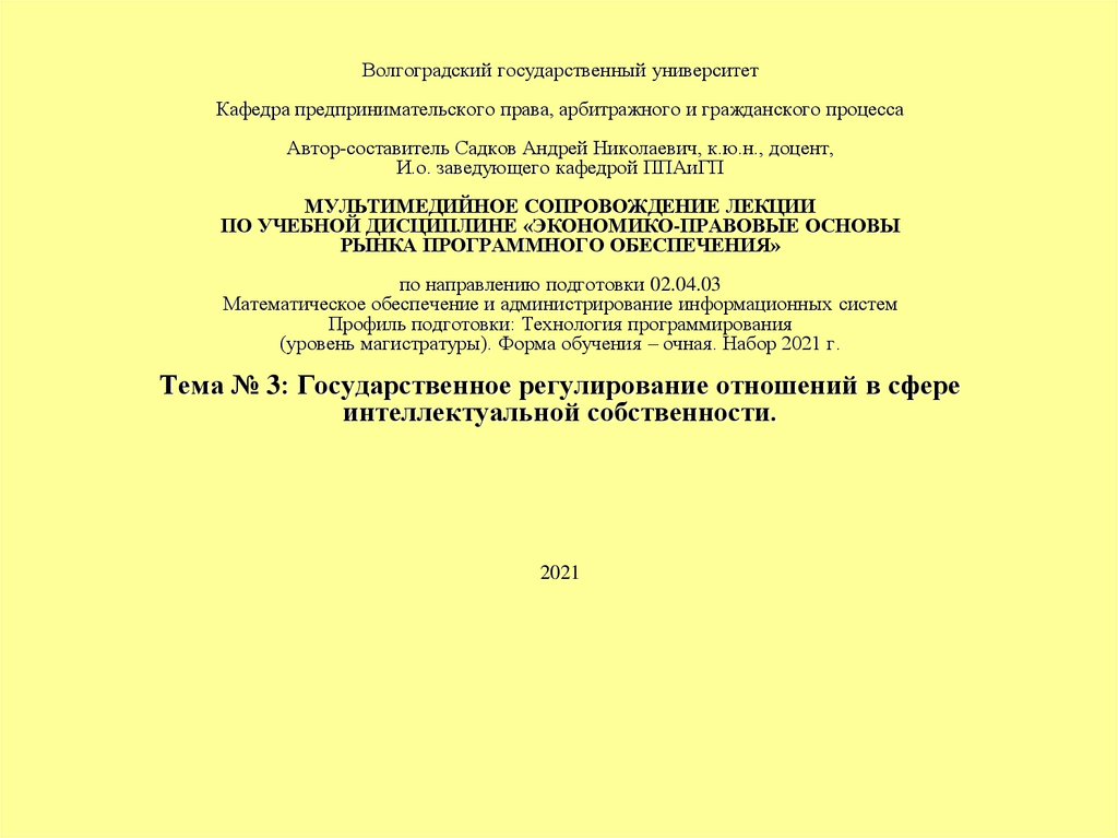 7. ВОПРОС 1. СИСТЕМА И ПОЛНОМОЧИЯ ОРГАНОВ, ОСУЩЕСТВЛЯЮЩИХ ФУНКЦИИ ГОСУДАРСТВЕННОГО РЕГУЛИРОВАНИЯ В СФЕРЕ ИНТЕЛЛЕКТУАЛЬНОЙ