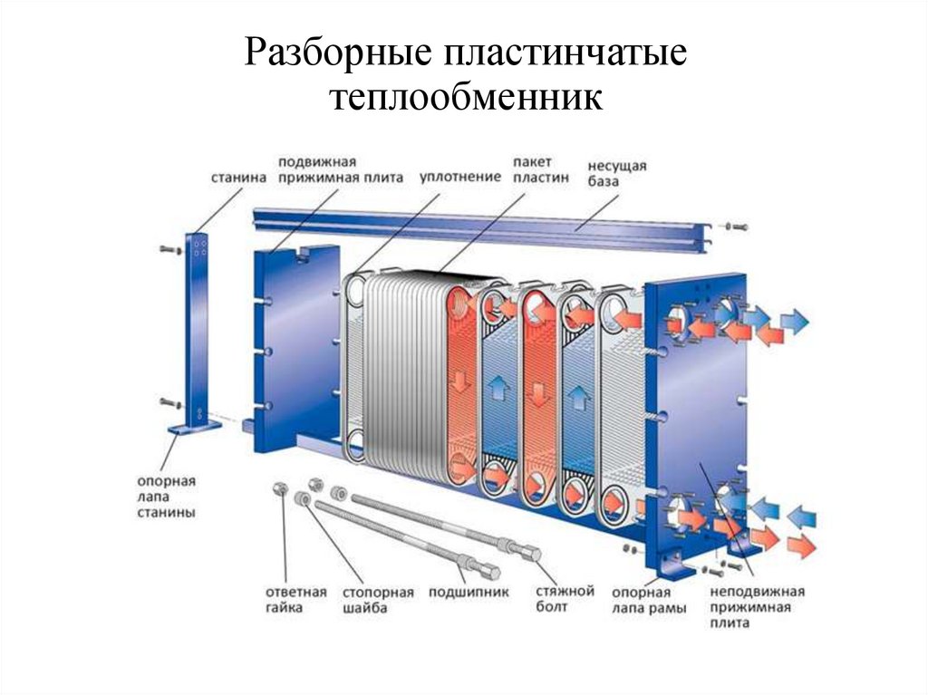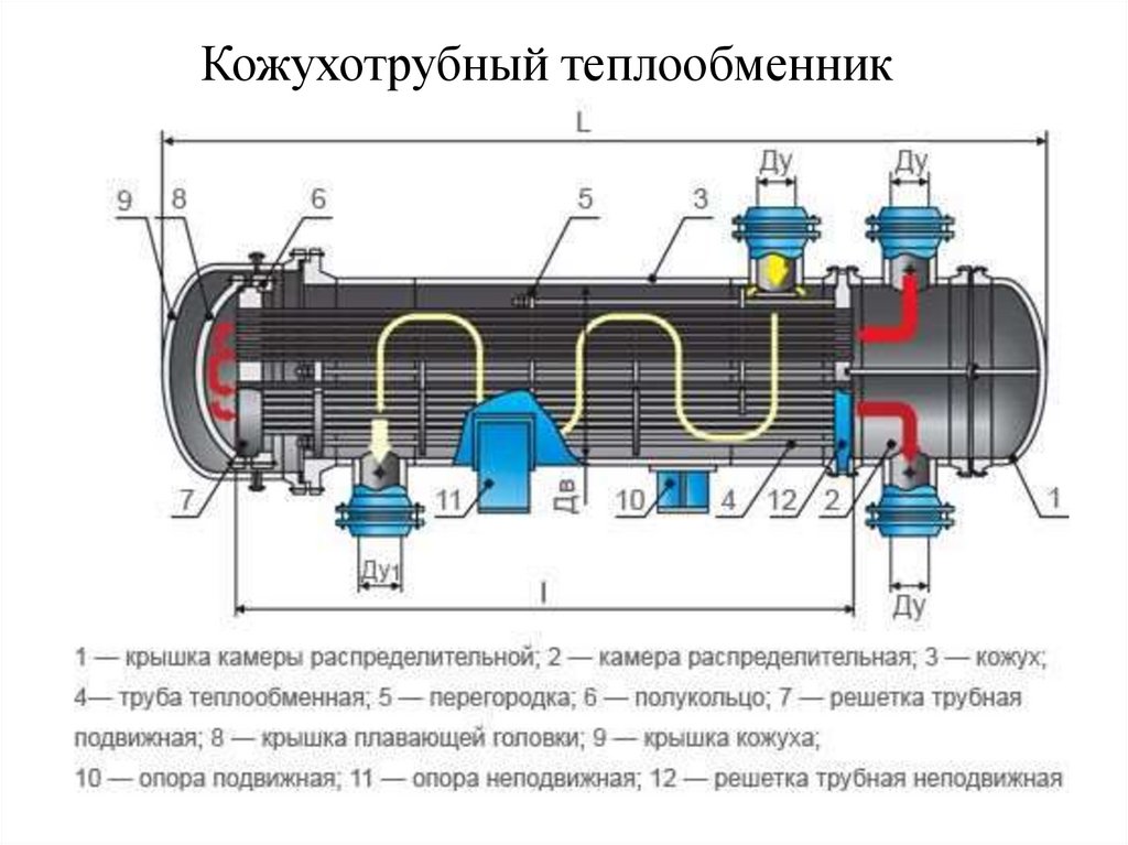 Теплообменники с плавающей головкой1 – передняя камера; 2 – задняя камера; 3 – внешний фланец головки; 4 – крышка головки; 5 – входной/