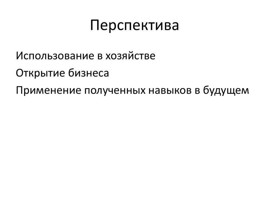 ПерспективаИспользование в хозяйстве