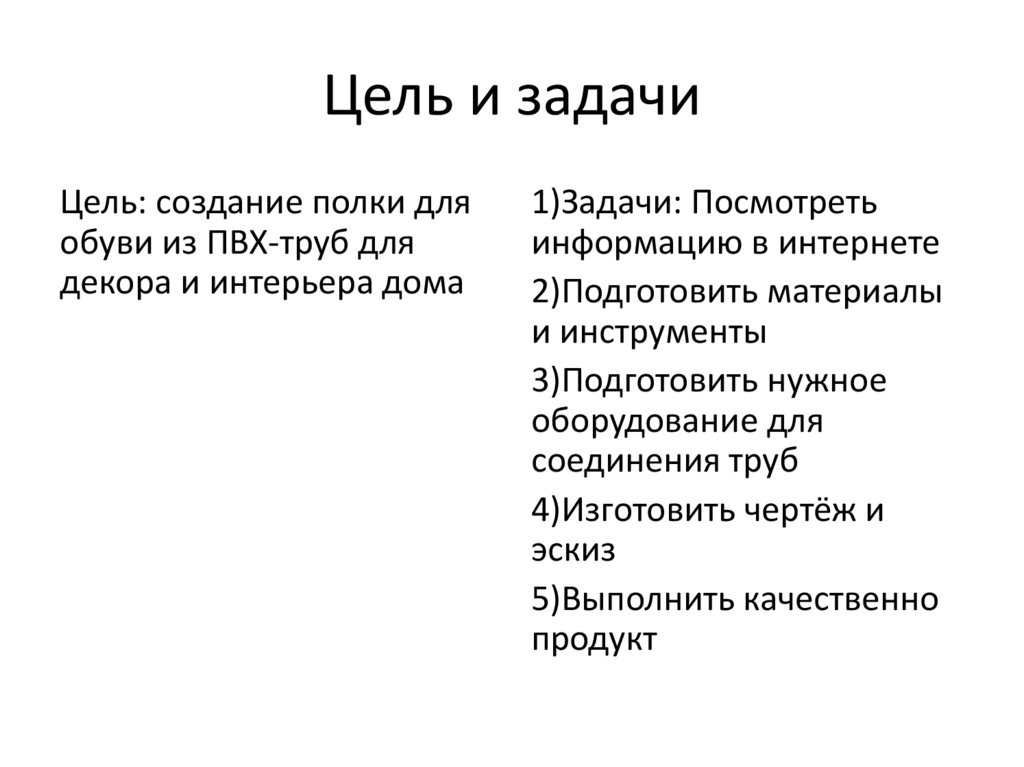 Цель и задачиЦель: создание полки для