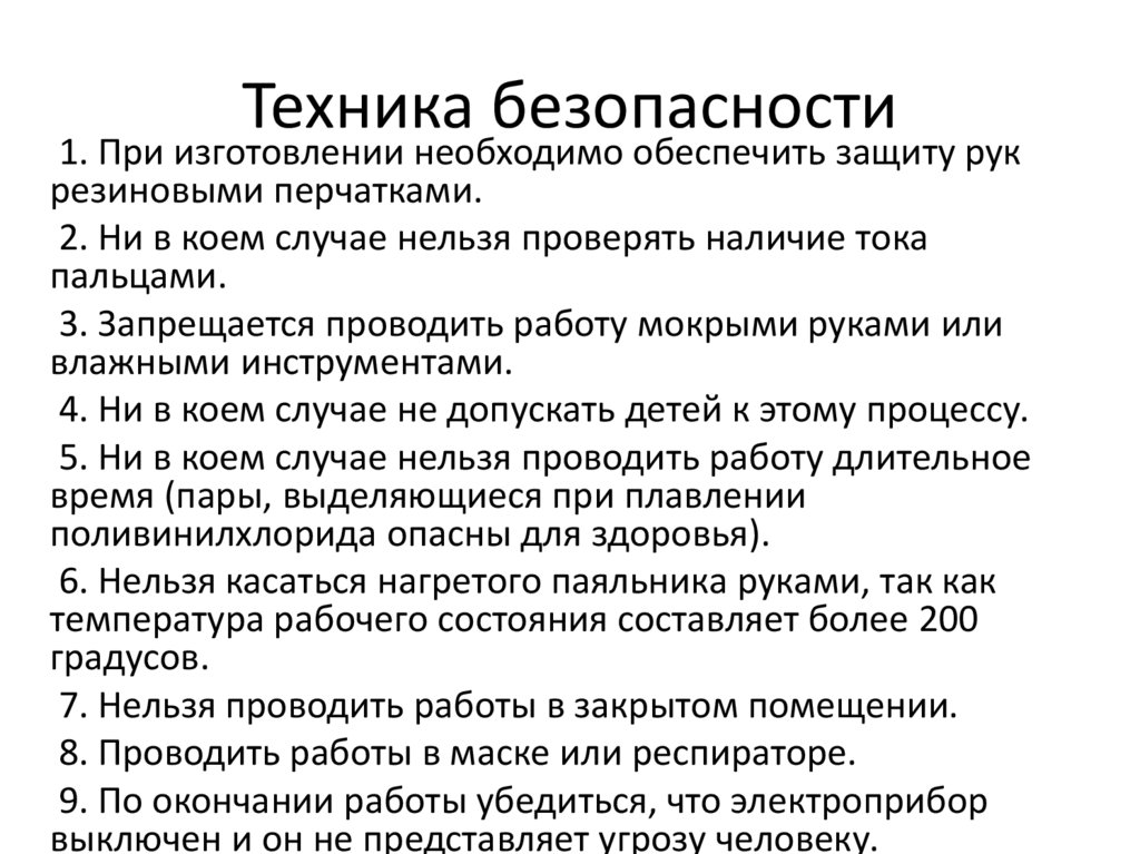 Техника безопасности1. При изготовлении необходимо обеспечить защиту рук