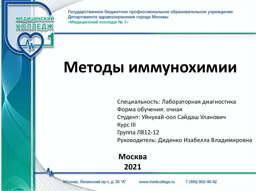 Методы иммунохимииСпециальность: Лабораторная диагностика