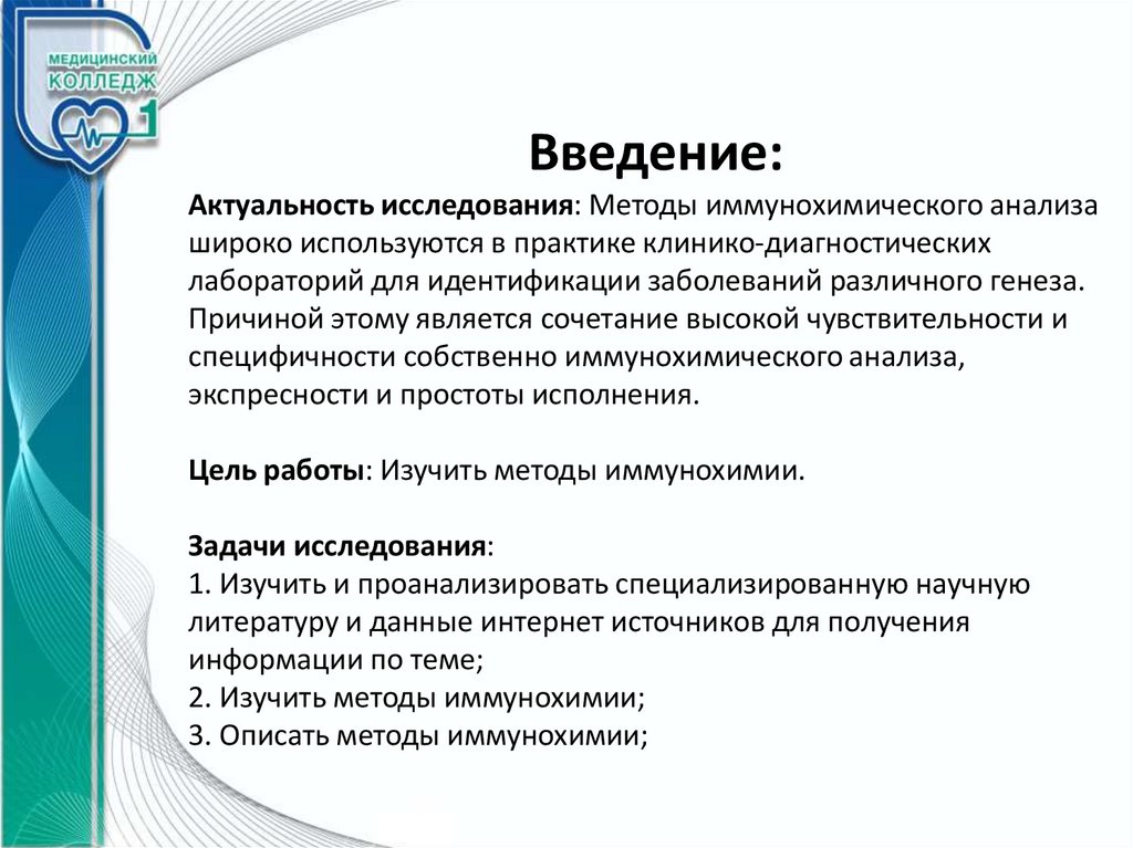 Введение:Актуальность исследования: Методы иммунохимического анализа