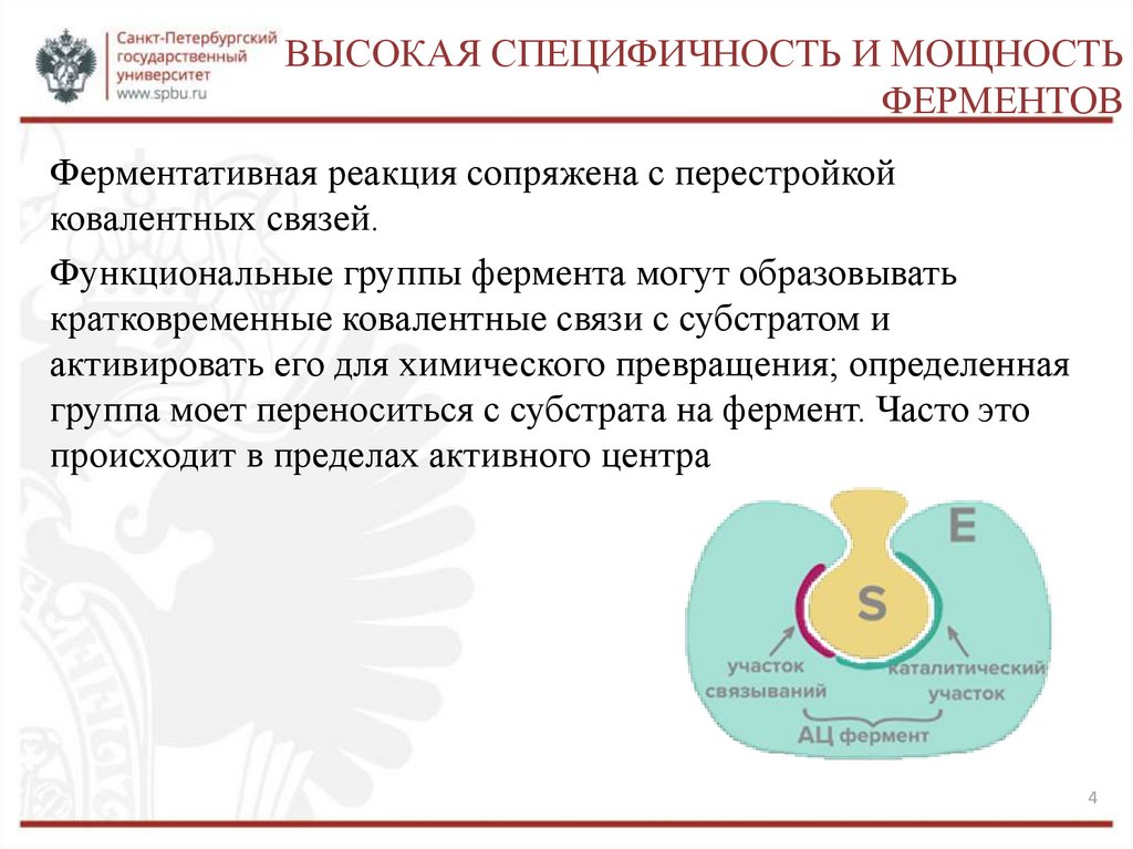 ВЫСОКАЯ СПЕЦИФИЧНОСТЬ И МОЩНОСТЬФЕРМЕНТОВ