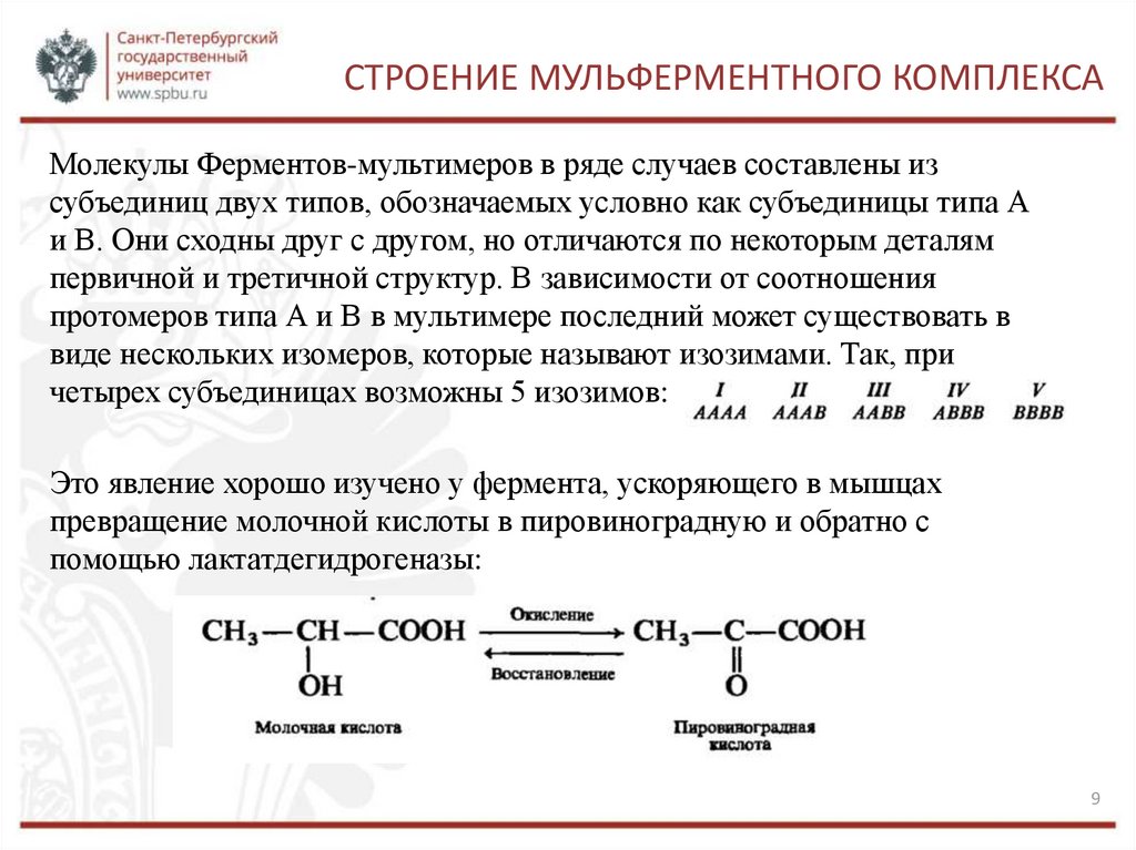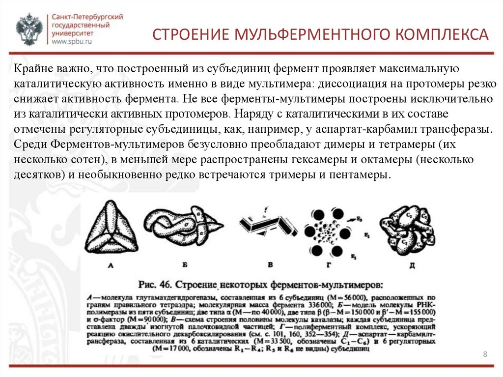 Структурные особенности белков - ферментов. Мультиферментные комплексы (2 курс)