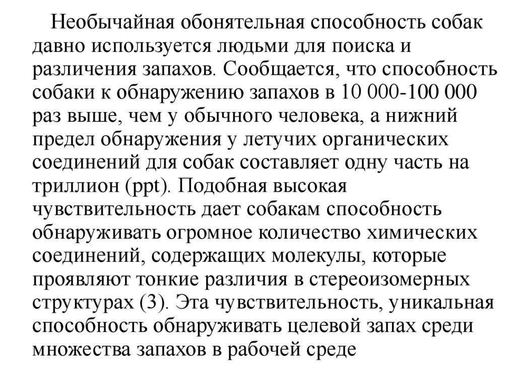 собаки к обнаружению запахов в 10 000-100 000