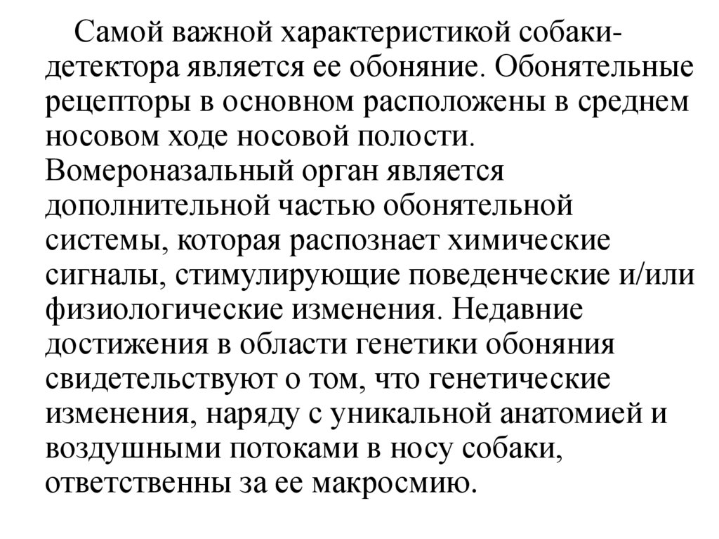 Самой важной характеристикой собакидетектора является ее обоняние. Обонятельныерецепторы в основном расположены в среднем